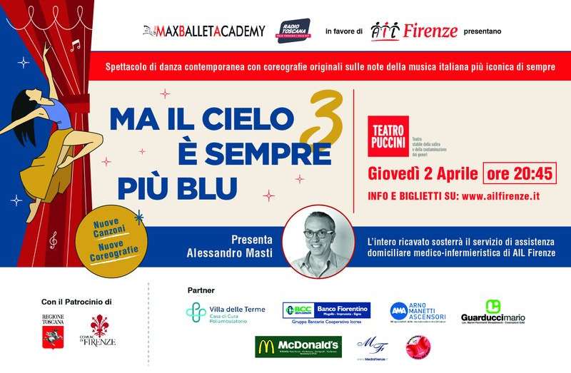 Torna al Teatro Puccini per il terzo anno “Ma il cielo è sempre più blu 3”, lo spettacolo totalmente rinnovato che vede protagonisti i giovani talenti della Max Ballet Academy.